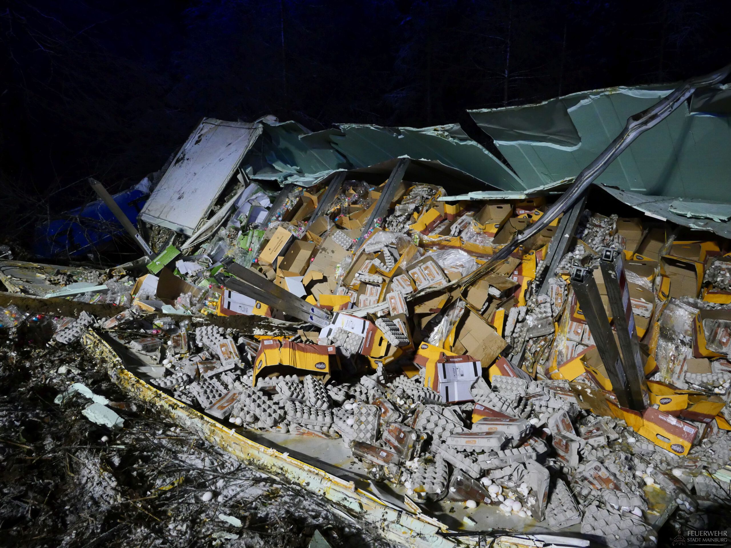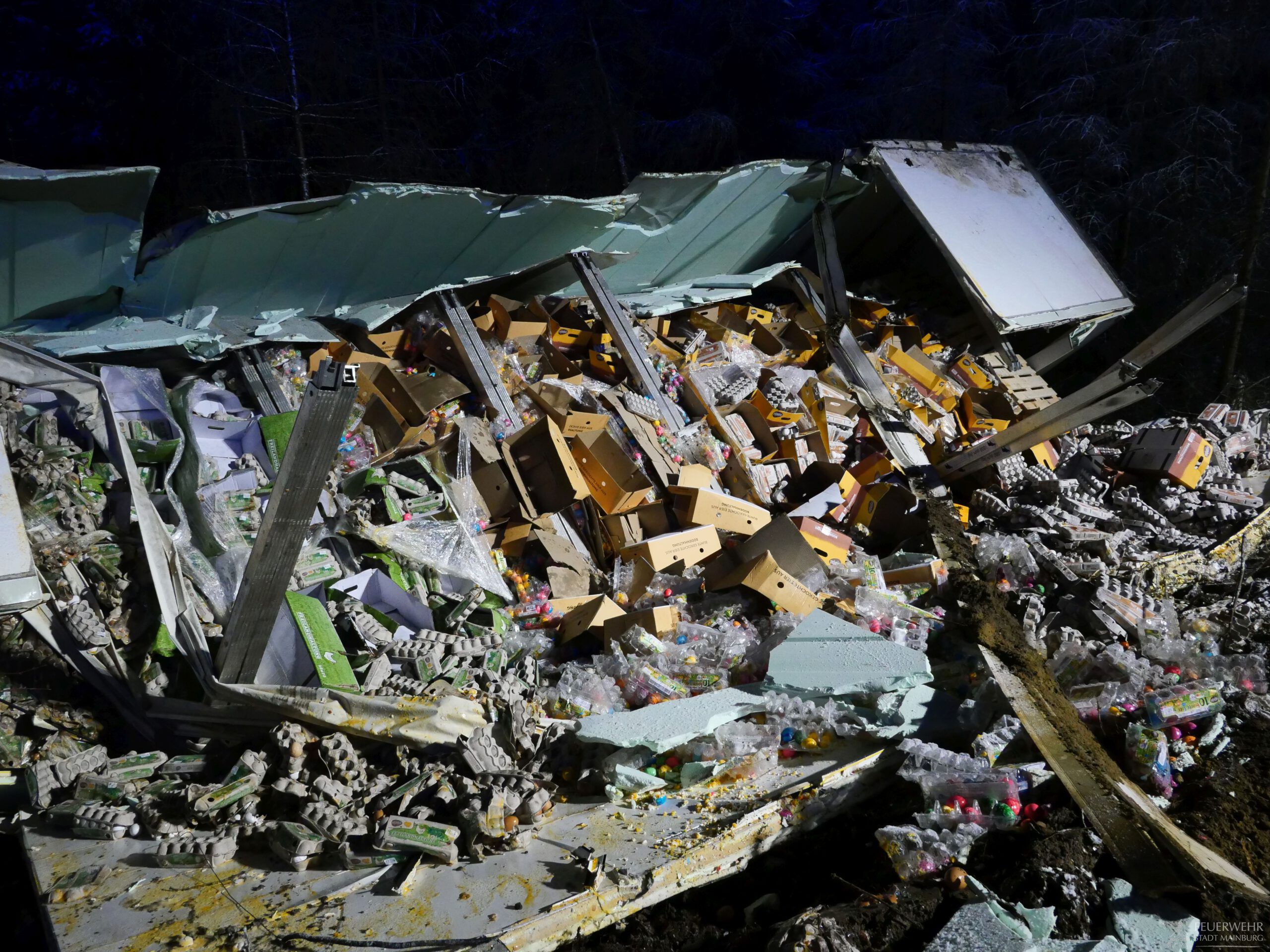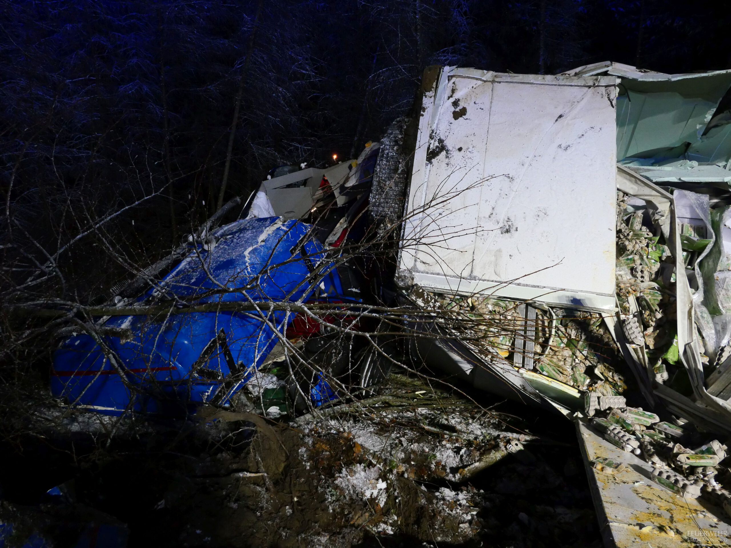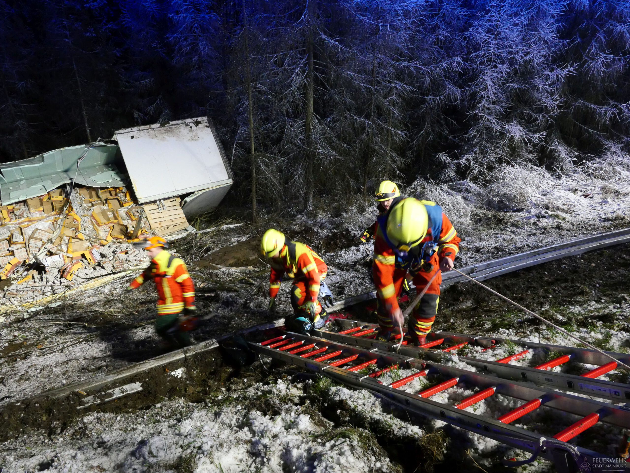 Verkehrsunfall mit LKW war die Alarmmeldung der ILS Landshut. Ein LKW war alleinbeteiligt von der Fahrbahn abgekommen und in den Graben gefahren. Der Fahrer konnte sich selbst aus dem Fahrerhaus befreien. Die Feuerwehr stellte den Brandschutz sicher und sperrte die Fahrbahn ab. Für die aufwendigen Bergungsmaßnahmen wurde die A93 durch die Straßenmeisterei komplett gesperrt.