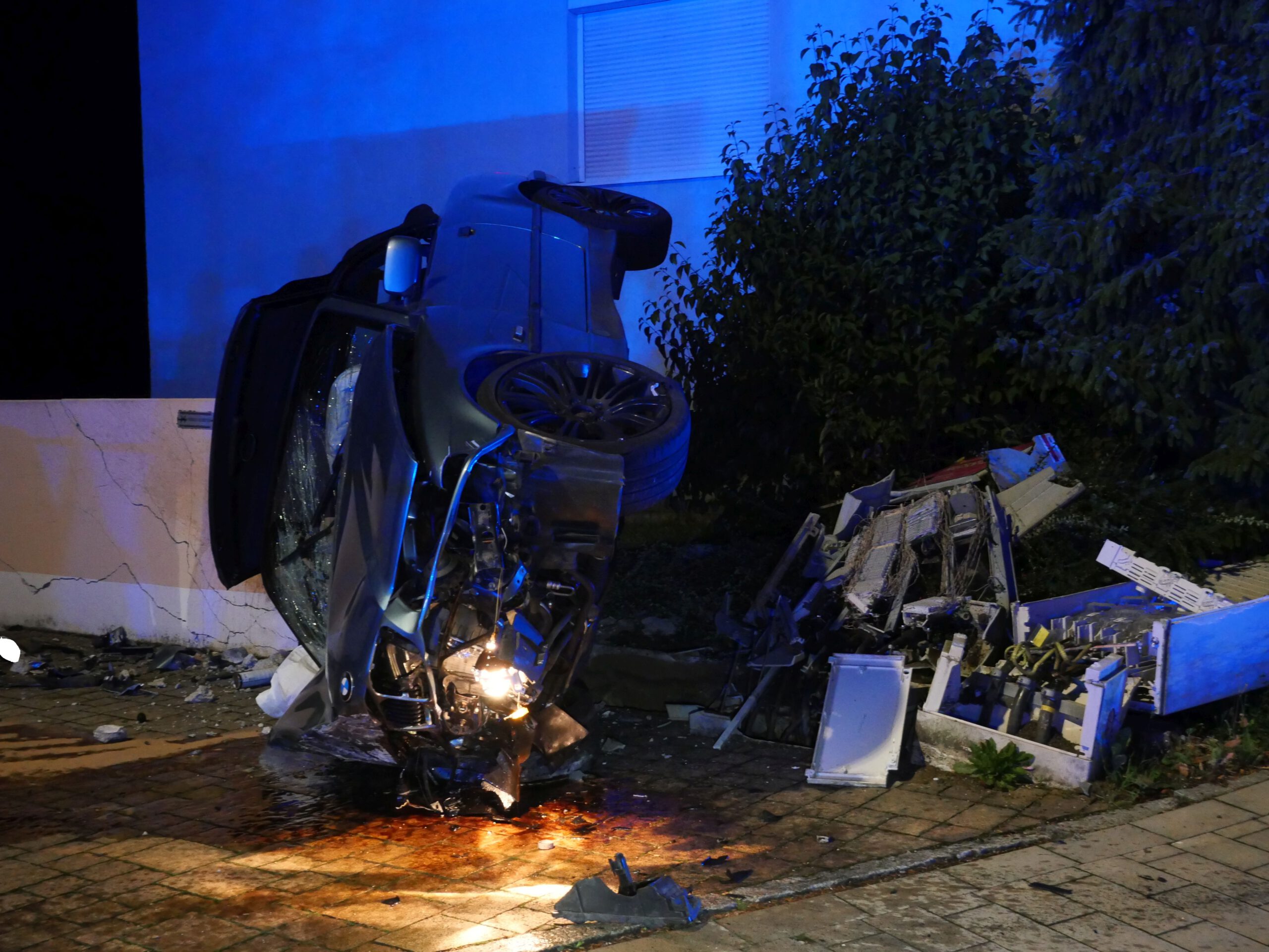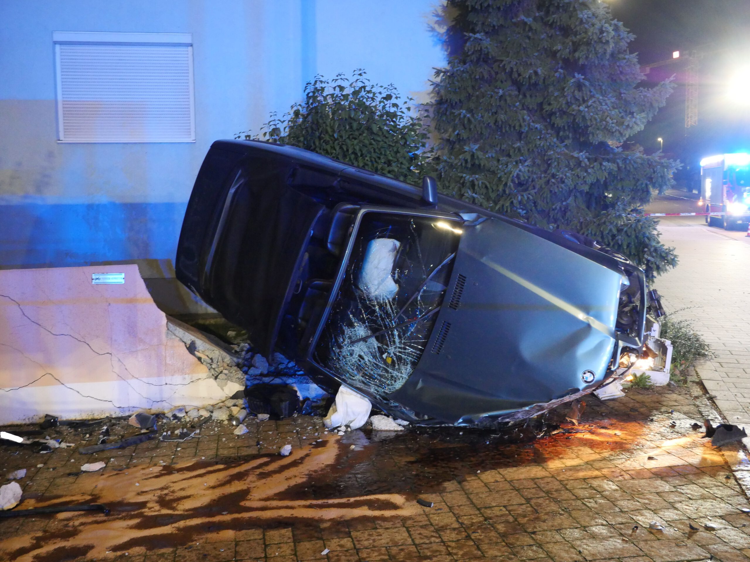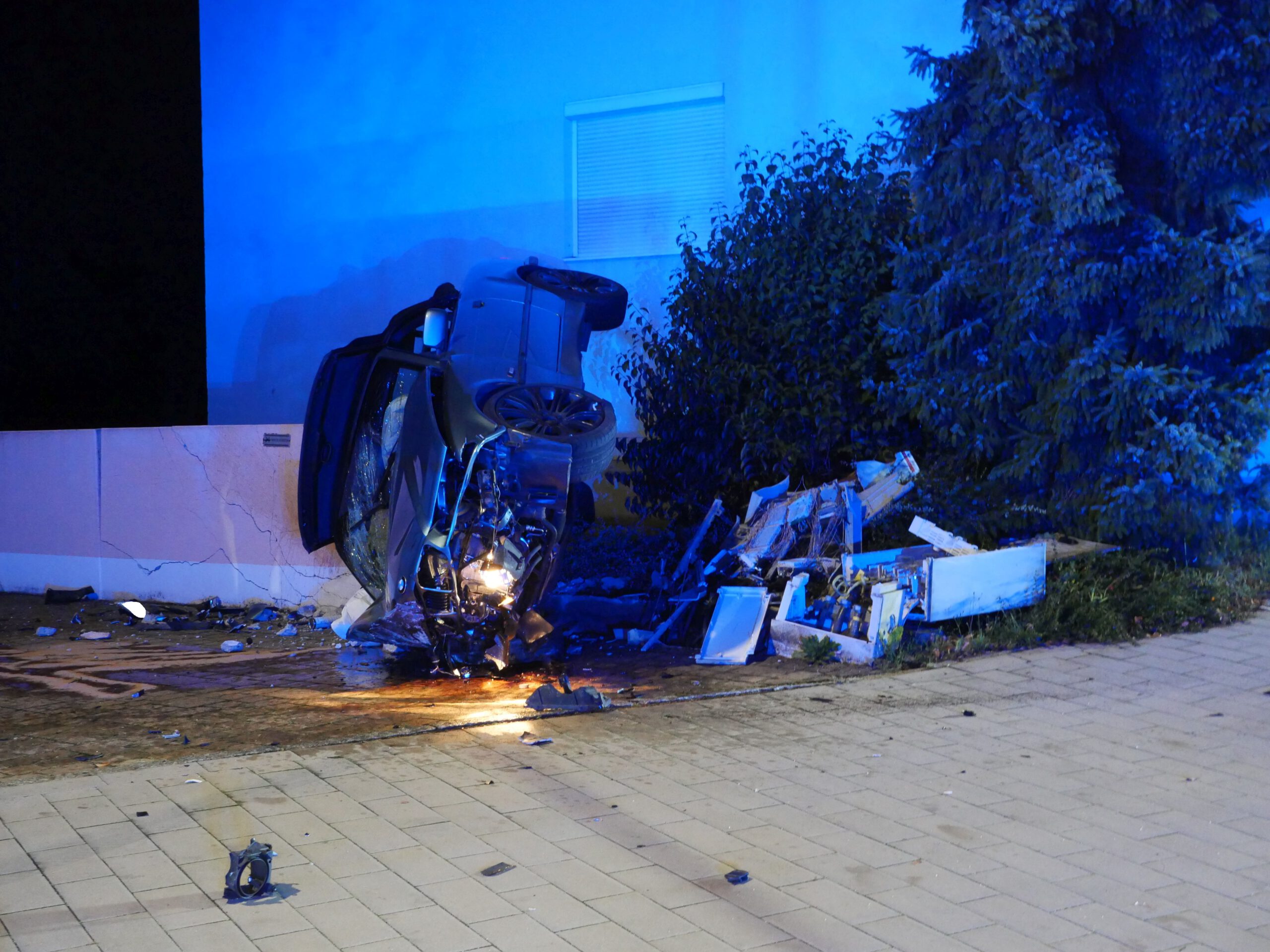 Verkehrsunfall PKW gegen Mauer war die Alarmmeldung. Ein PKW war über einen Stromkasten in eine Mauer gefahren. Der Bereich um den Stromkasten wurde abgesperrt und der Stromversorger verständigt. Der Brandschutz wurde sichergestellt und die Straße gereinigt.